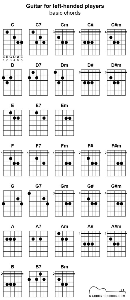 Guitar for left-handed players (basic chords)