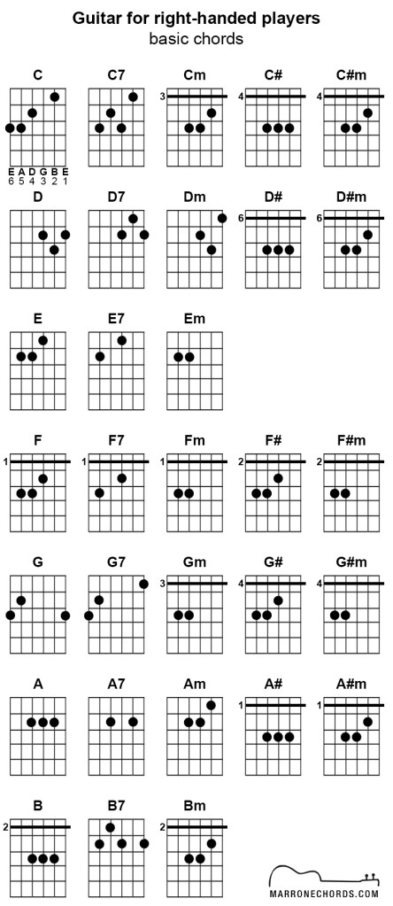 Guitar for right-handed players (basic chords)