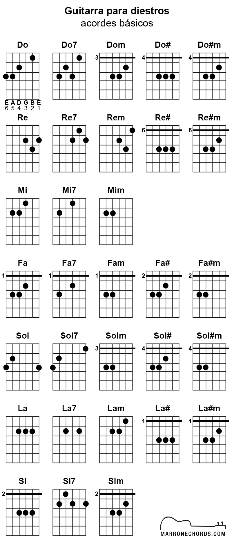 Guitarra para diestros (acordes básicos)
