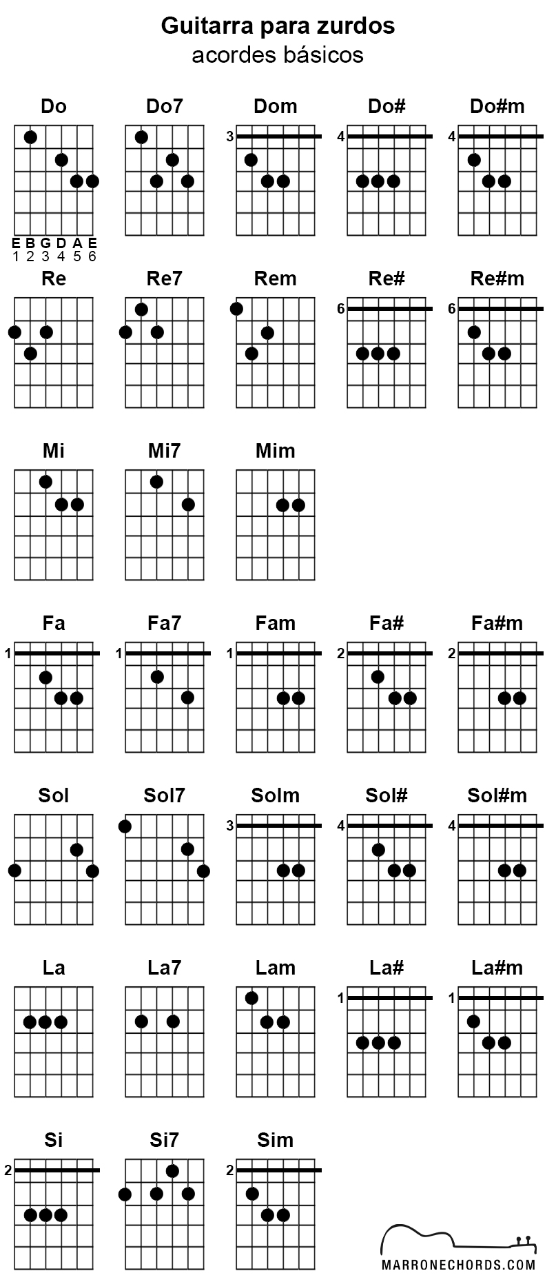 Guitarra para zurdos (acordes básicos)