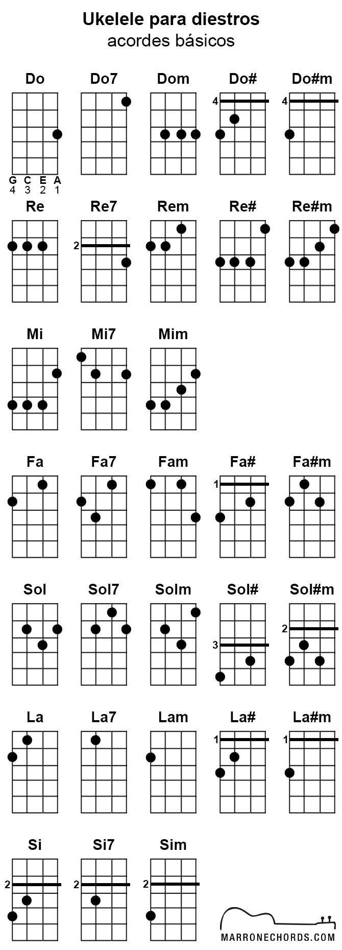 Ukelele para diestros (acordes básicos)