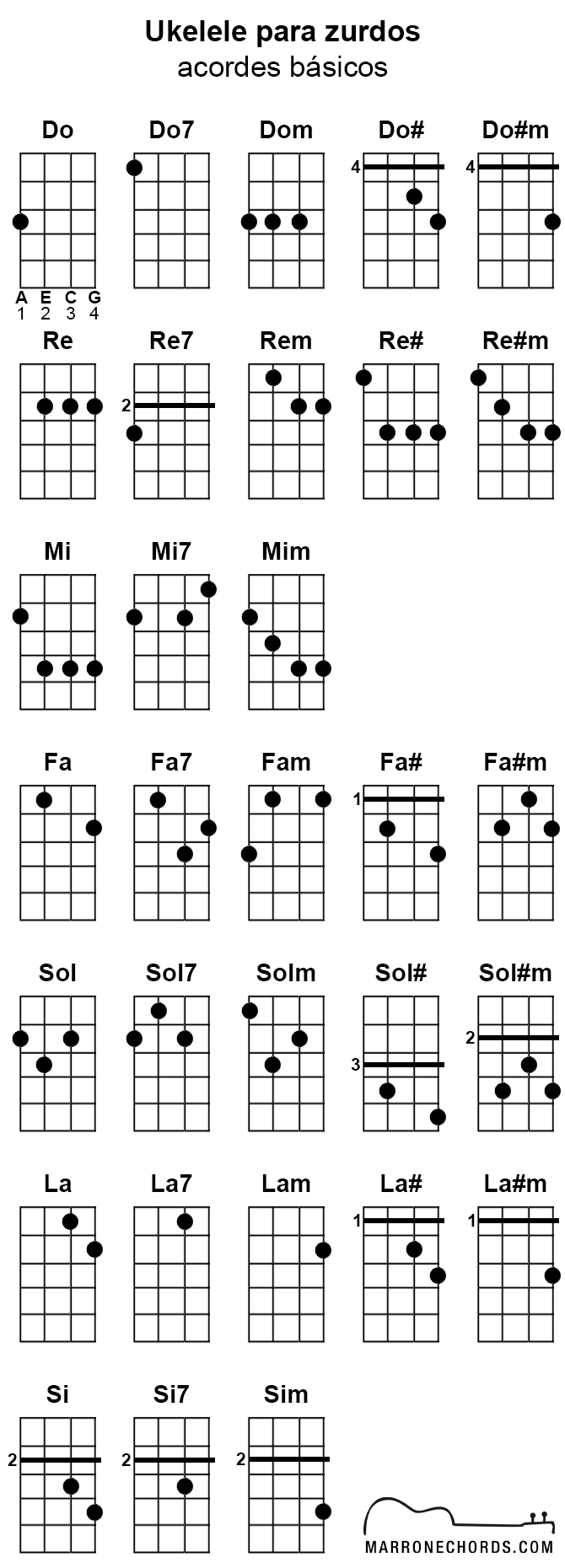 Ukelele para zurdos (acordes básicos)