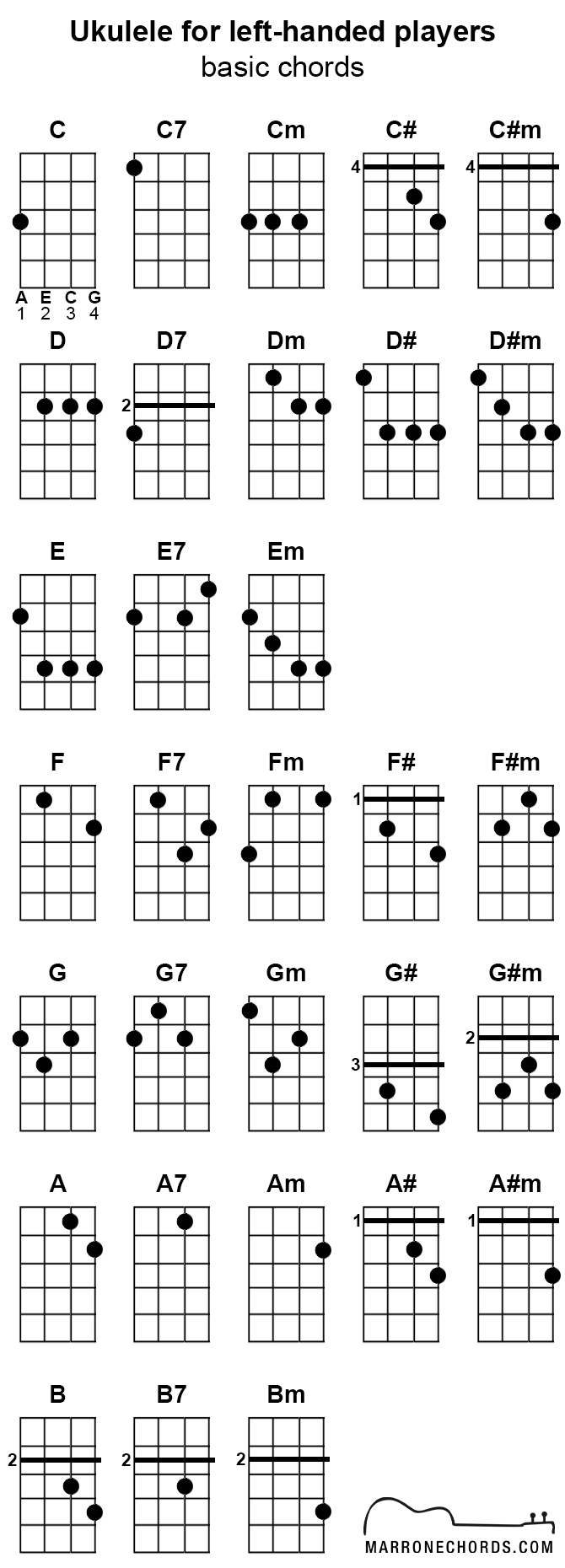 Ukulele for left-handed players (basic chords)