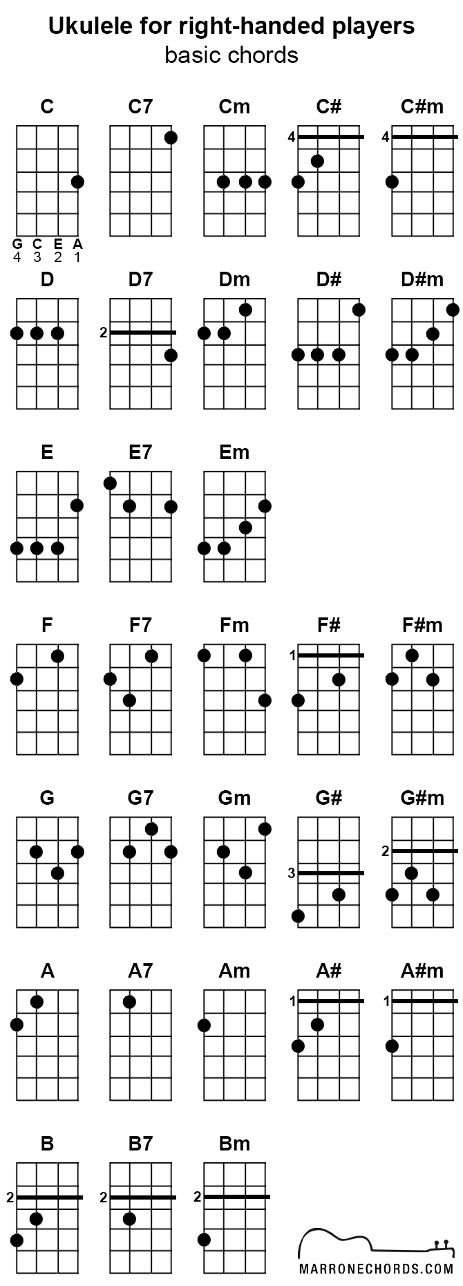 Ukulele for right-handed players (basic chords)